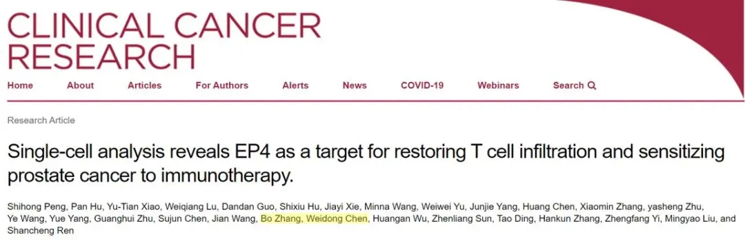 研究内容:EP4是恢复T细胞浸润和使得前列腺癌对免疫治疗敏感的靶点