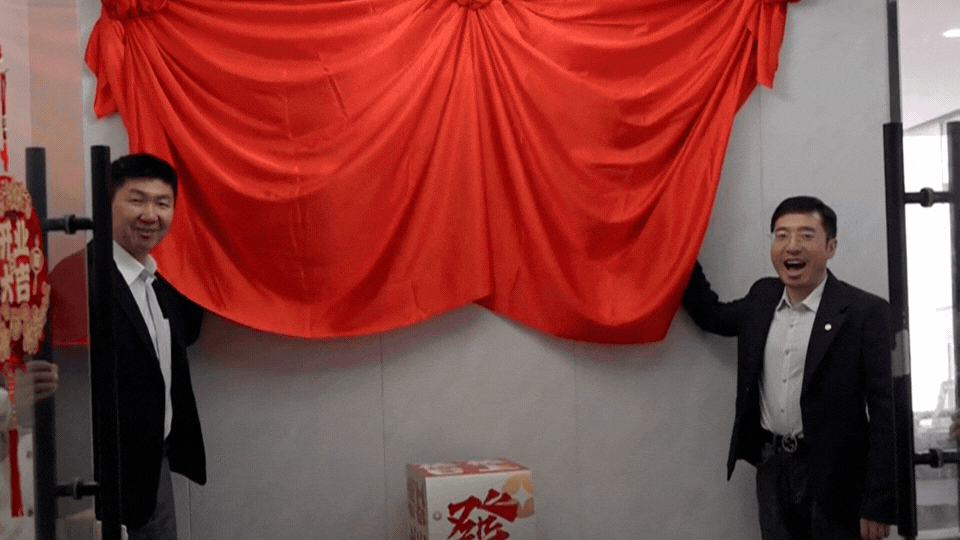 红绸落下,新章开启 。 在烈冰杭州分部团队成员的注视下,江滔先生(全国销售副总监)与宗杰先生(烈冰生物董事长)共同执起红绸。随着红绸缓缓落下,“烈冰科技”招牌展现在众人面前——掌声雷动,礼花绽放。 这一刻,不仅是一个新分部的启用,更是一份承诺的落地——我们要在杭州,扎根、生长、服务。