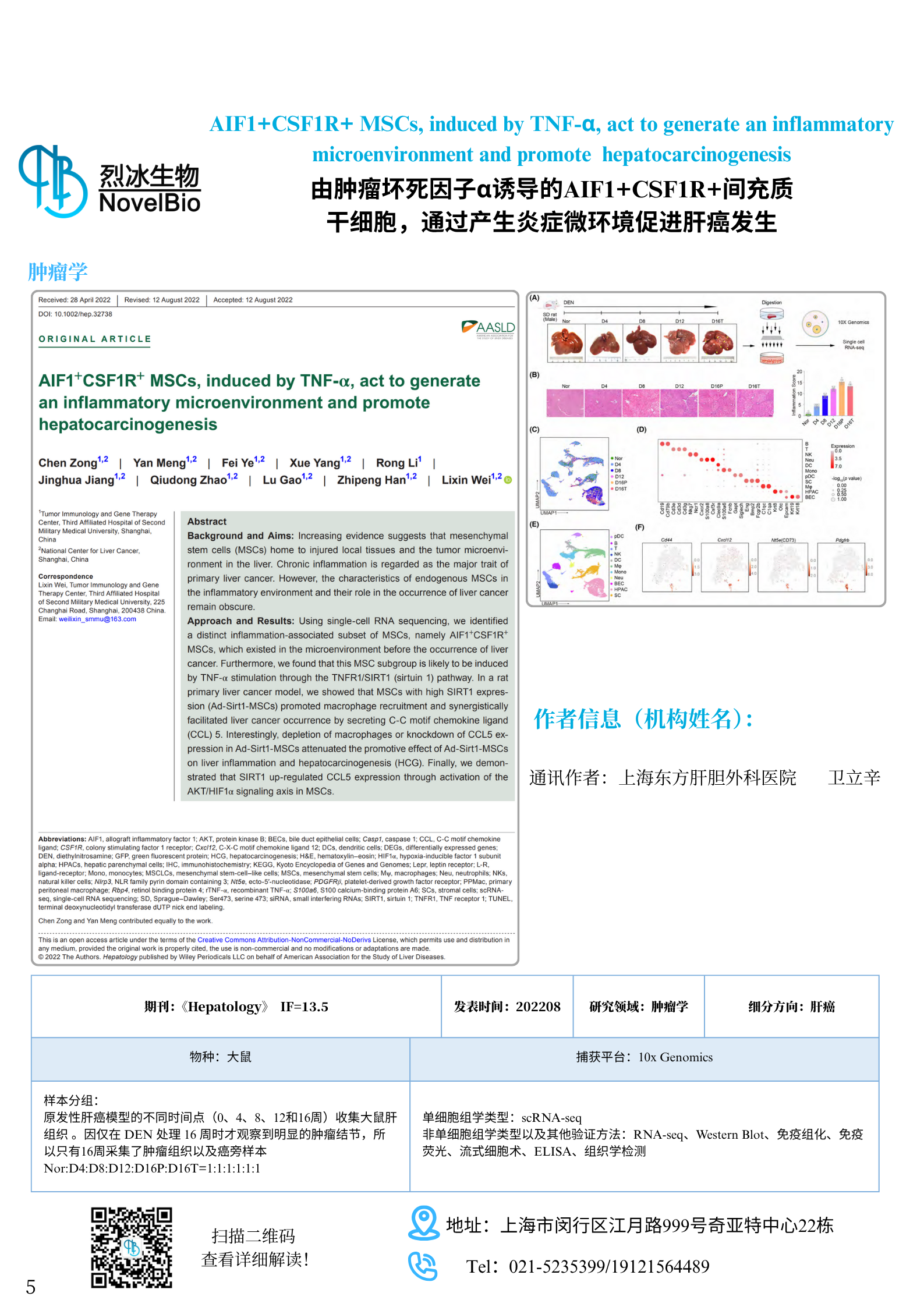 AIF1+CSF1R+ MSCs, induced by TNF-α, act to generate an inflammatory microenvironment and promote hepatocarcinogenesis