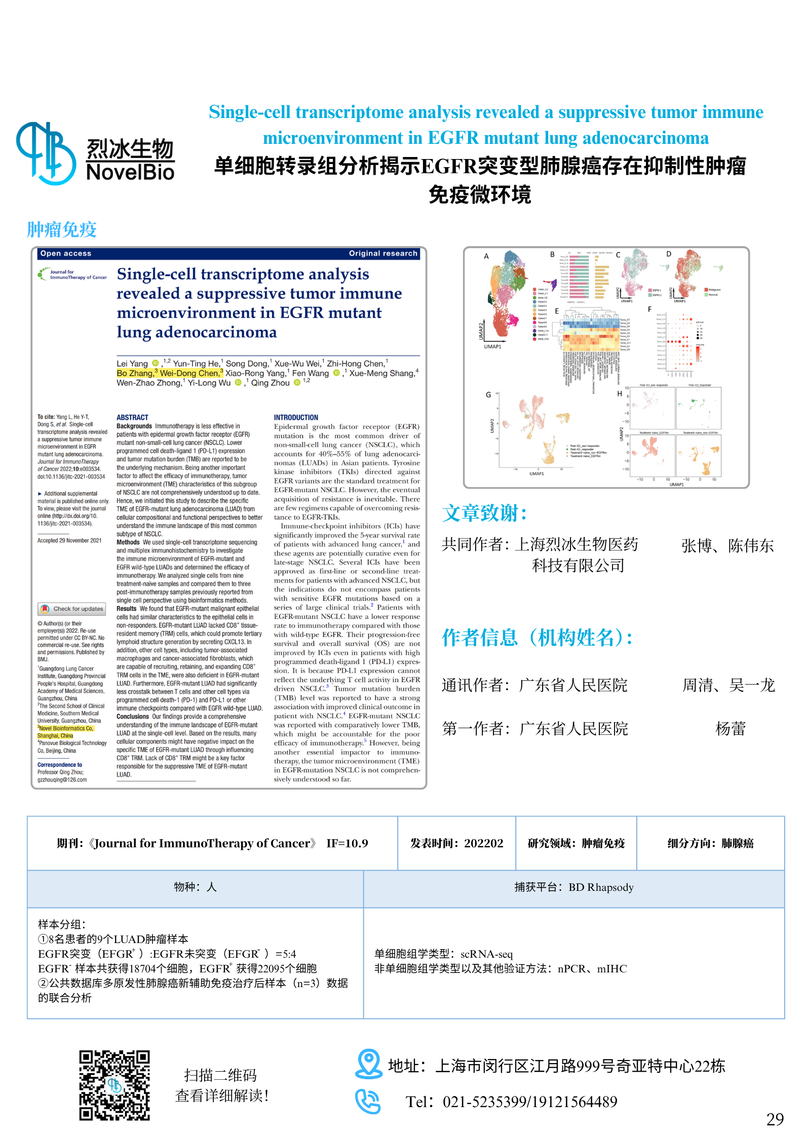 Single-cell transcriptome analysis revealed a suppressive tumor immune microenvironment in EGFR mutant lung adenocarcinoma