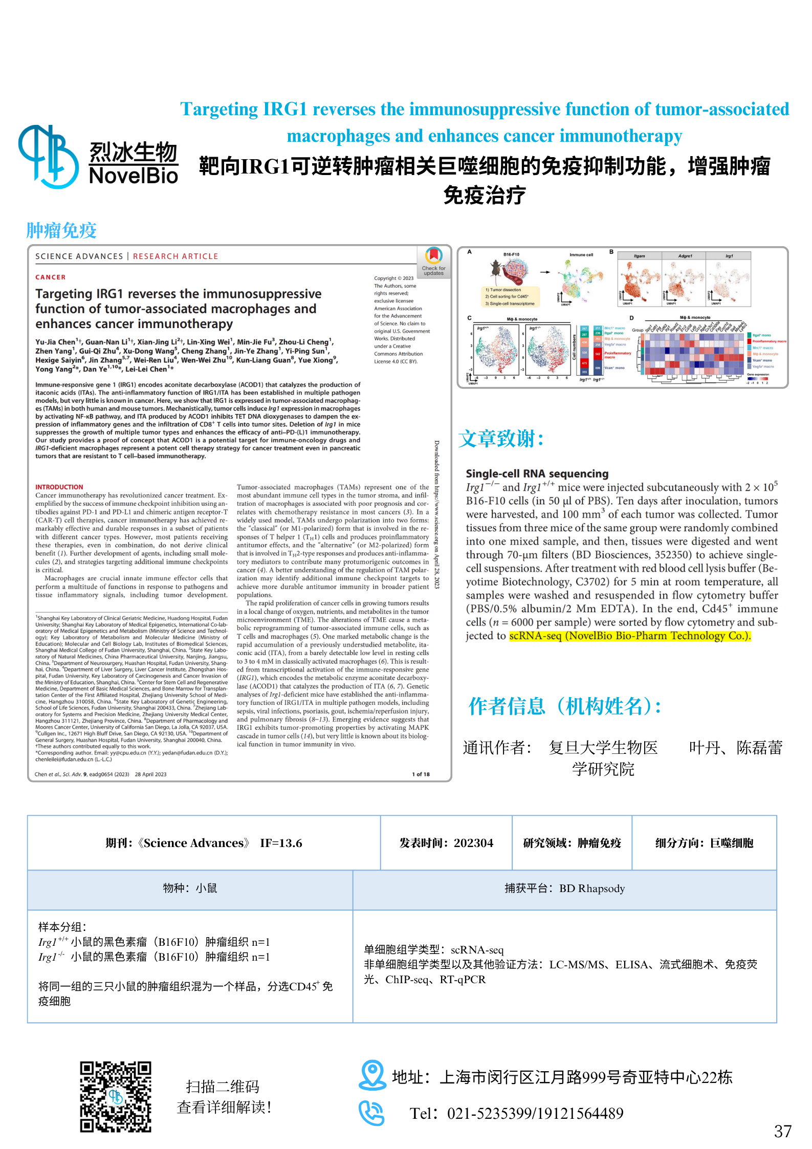 Targeting IRG1 reverses the immunosuppressive function of tumor-associated macrophages and enhances cancer immunotherapy