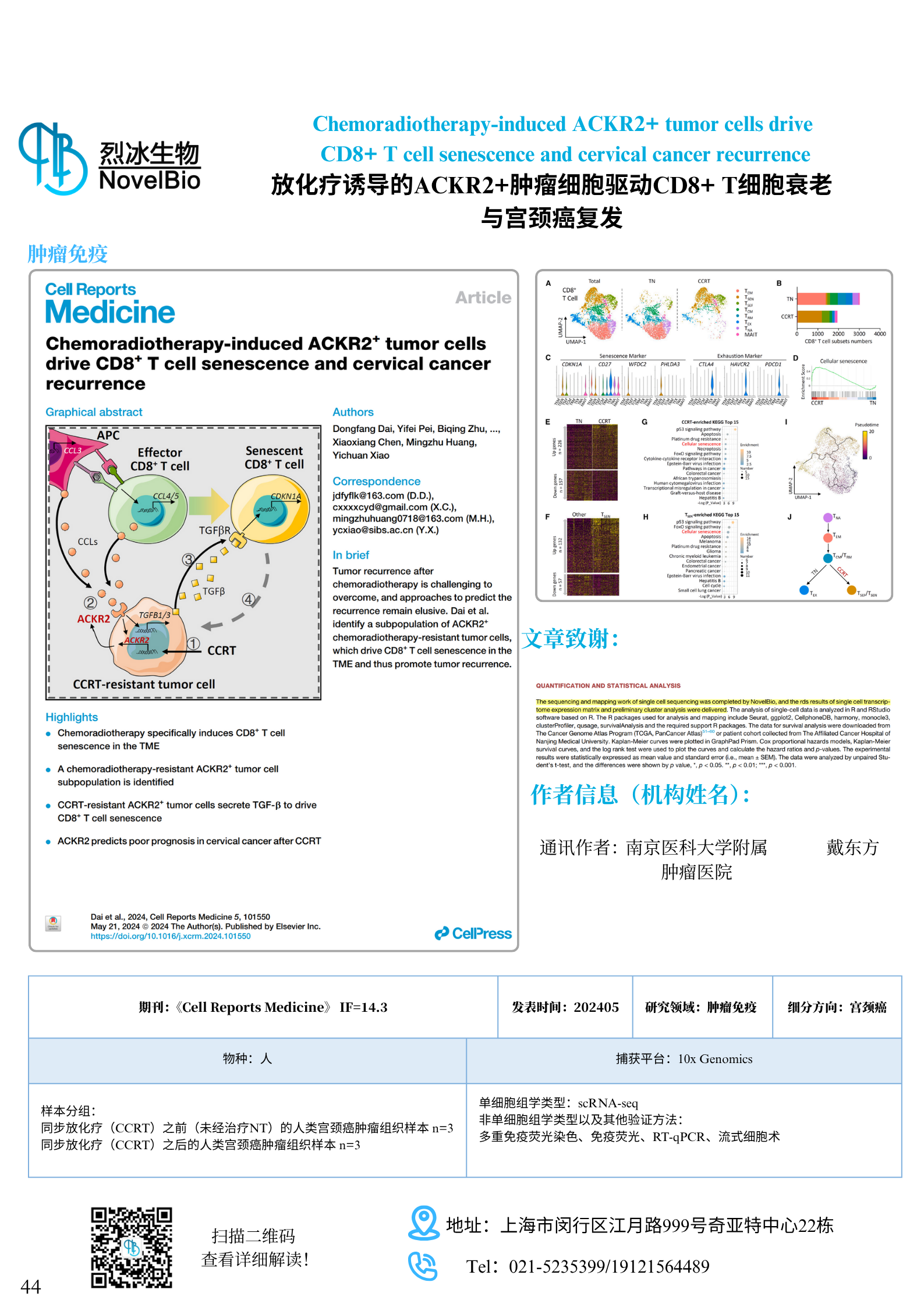Chemoradiotherapy-induced ACKR2+ tumor cells drive CD8+ T cell senescence and cervical cancer recurrence