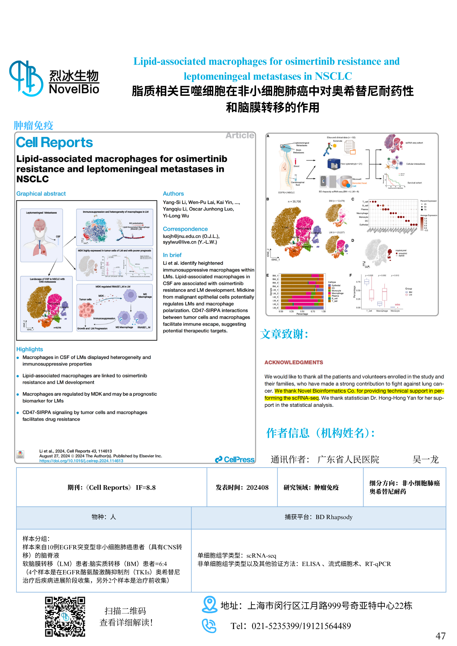 Lipid-associated macrophages for osimertinib resistance and leptomeningeal metastases in NSCLC