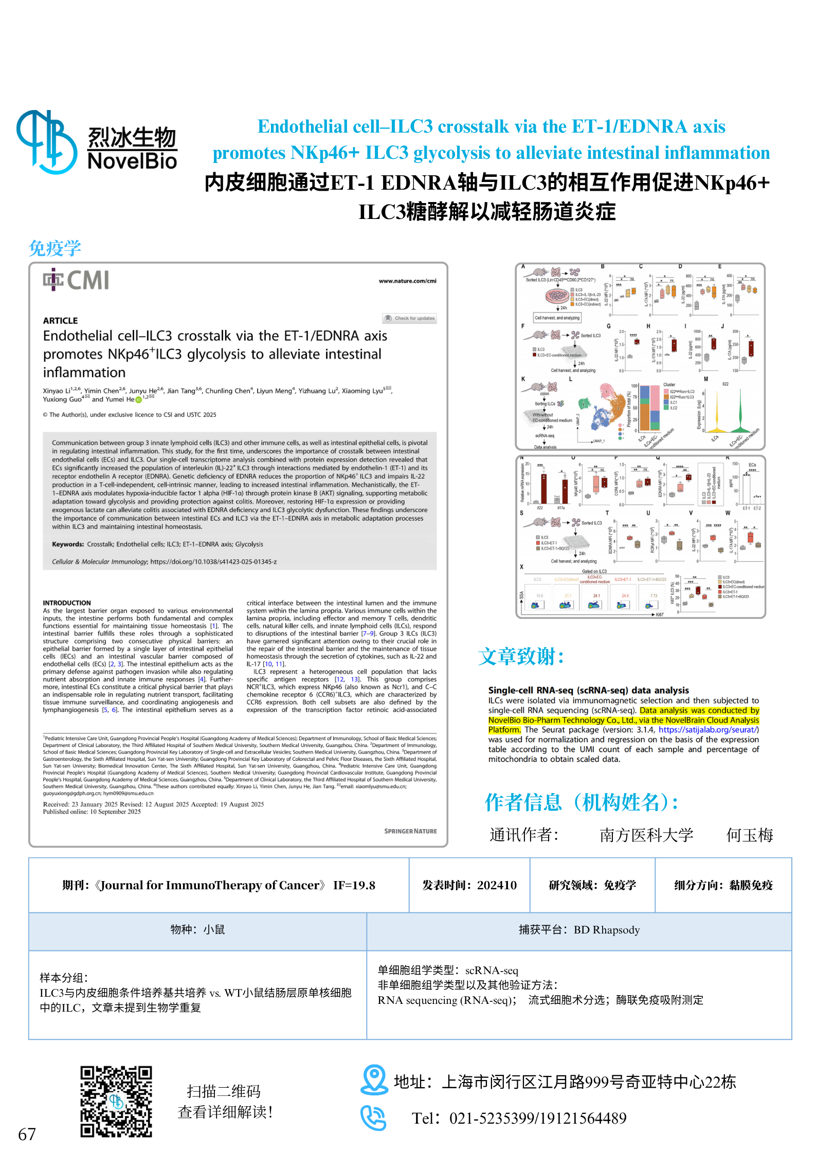Endothelial cell–ILC3 crosstalk via the ET-1/EDNRA axis promotes NKp46+ ILC3 glycolysis to alleviate intestinal inflammation