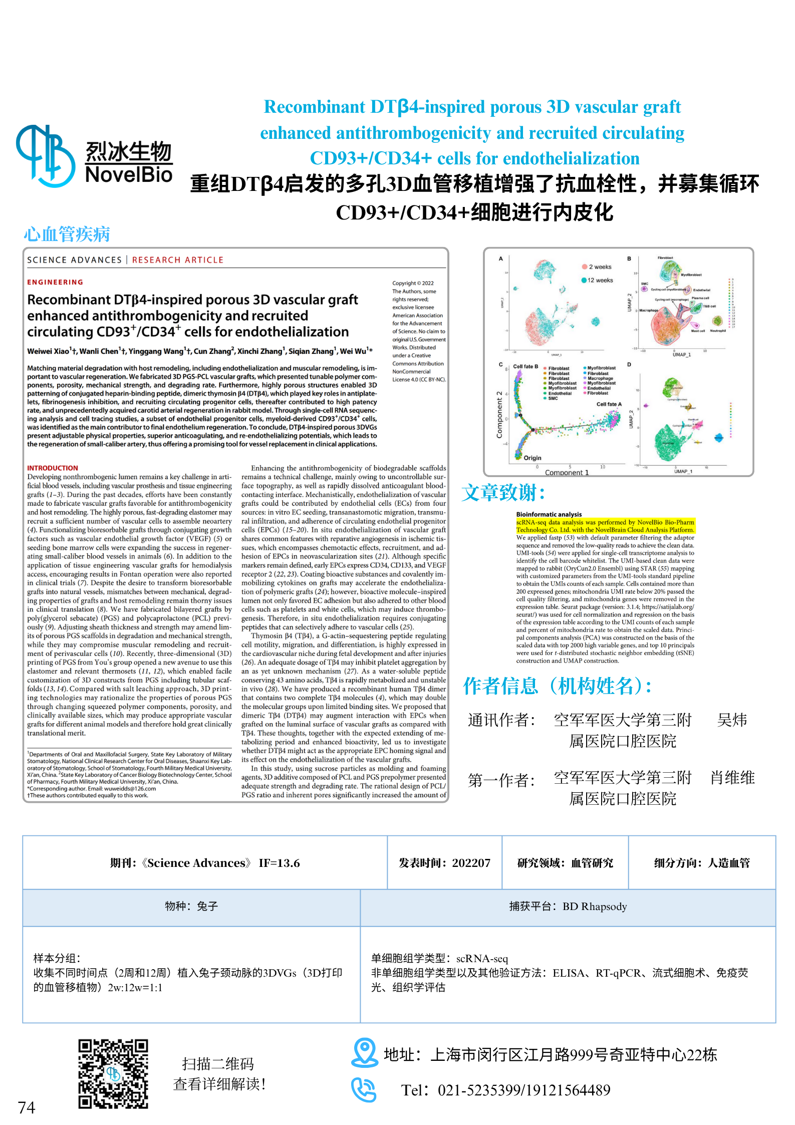 Recombinant DTβ4-inspired porous 3D vascular graft enhanced antithrombogenicity and recruited circulating CD93+/CD34+ cells for endothelialization
