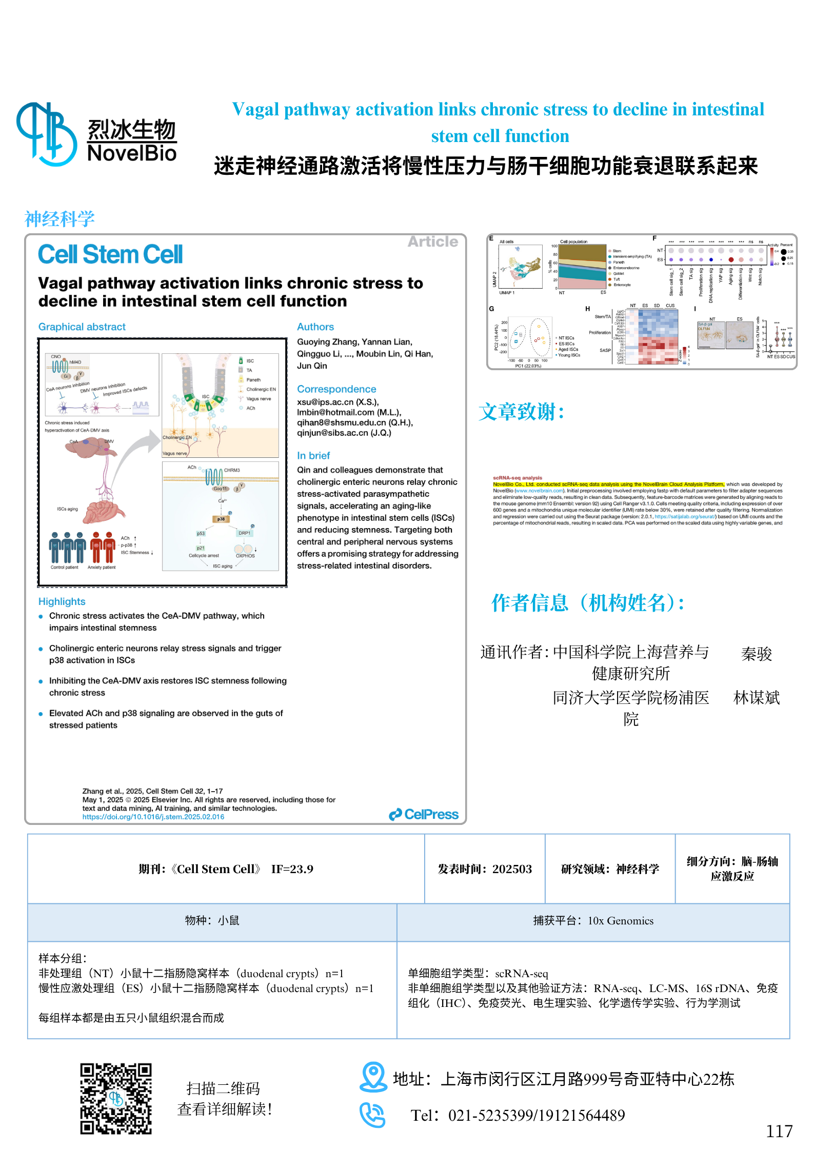 Vagal pathway activation links chronic stress to decline in intestinal stem cell function