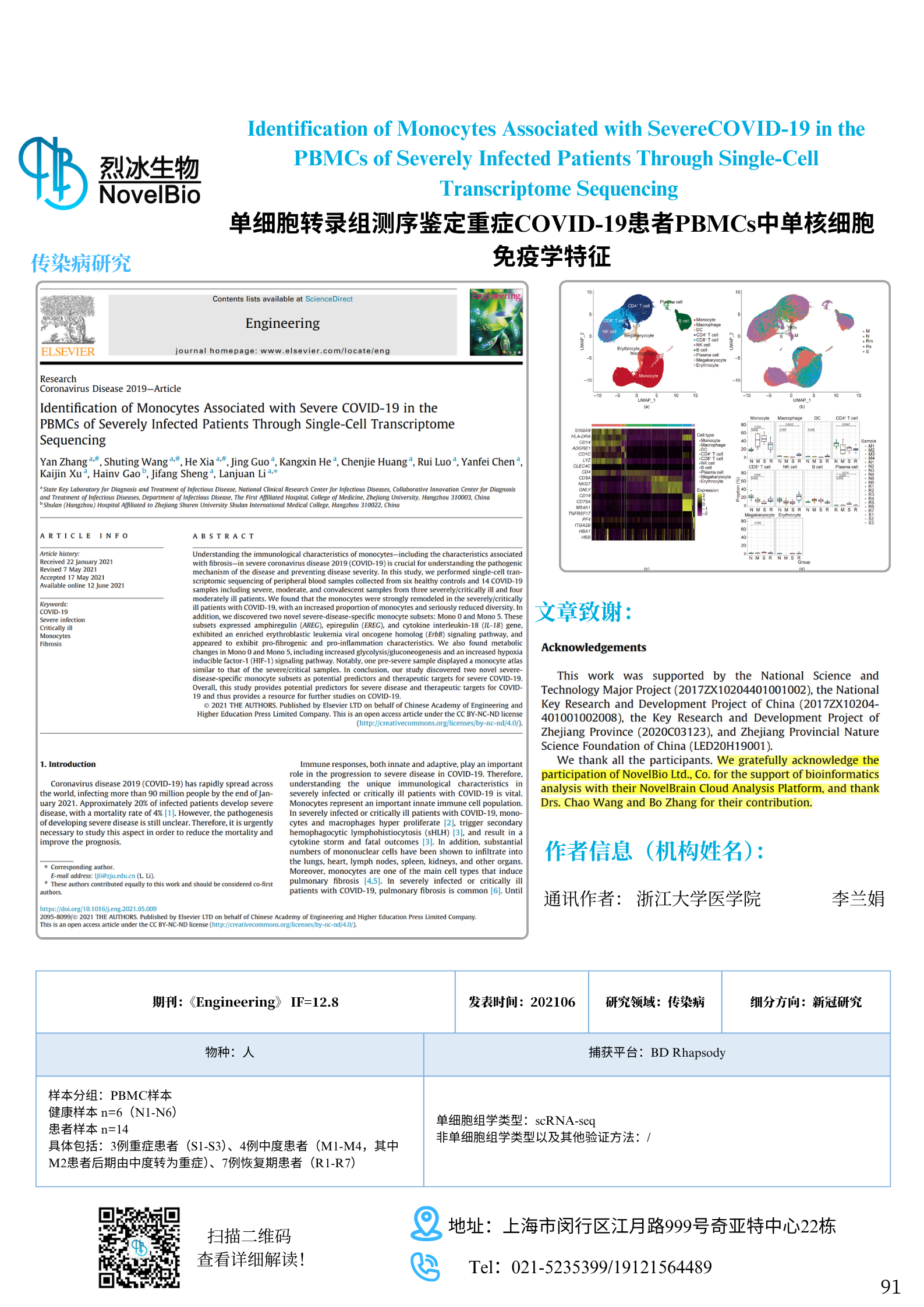 Identification of Monocytes Associated with SevereCOVID-19 in the PBMCs of Severely Infected Patients Through Single-Cell Transcriptome Sequencing